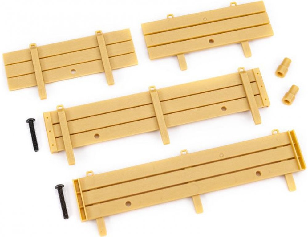 Boční panely pro přívěsný vozík Traxxas, které zvýší kapacitu ložného prostoru. Maketový vzhled s texturou dřeva. Otvory pro připevnění náhradních kol přívěsu (prodávají se samostatně).