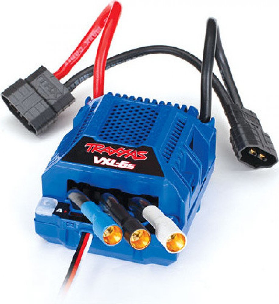 Traxxas elektronický regulátor Velineon VXL-6s V2 je určen do RC modelů aut Traxxas E-Revo 1:8 VXL a Unlimited Desert Racer. Zlacené konektory 6.5mm. Napájení 2x 2s/3s LiPol, hmotnost 206g, rozměry 58x72x46mm, BEC 6V 10A, módy Sport, Race a Training. Nahrazen položkou TRA3485T.