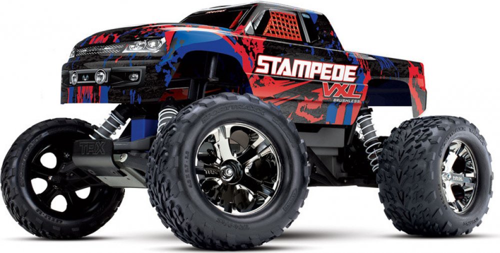 Elektro Monster Truck Stampede VXL je výkonná 2WD Monster Truck se střídavým motorem, mikro přijímačem ve vodě odolné uzavřené schránce! Světlá výška až 100 mm vás protáhne každým terénem. Motor Velineon® 3500 má vysoký výkon, je prakticky bezúdržbový a dlouhodobý výkon. Vodotěsný regulátor VXL-3s díky technologii EZ-Set® je jako první vybaven tréninkovým režimem, který omezuje plný plyn s nastavením na 3 Módy. Díky tomu se mohou začínající řidiči postupně seznámit s vlastnostmi modelu a připravit se na plnou sílu auta