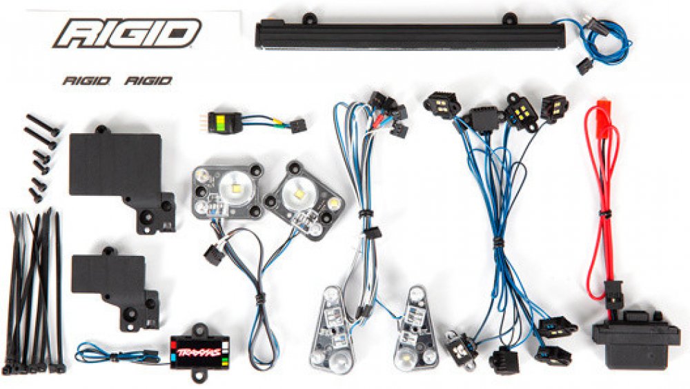 Traxxas LED osvětlení kompletni Pro Scale - určeno pro RC model auta TRX-4 Defender. Sadu lze nainstalovat samostatně (konstantní svícení), nebo v kombinaci se sadou Pro Scale (funkční brzdová a zpátečková světla, funkční směrovky a výstražná světla, nastavitelná intenzita světlometů).