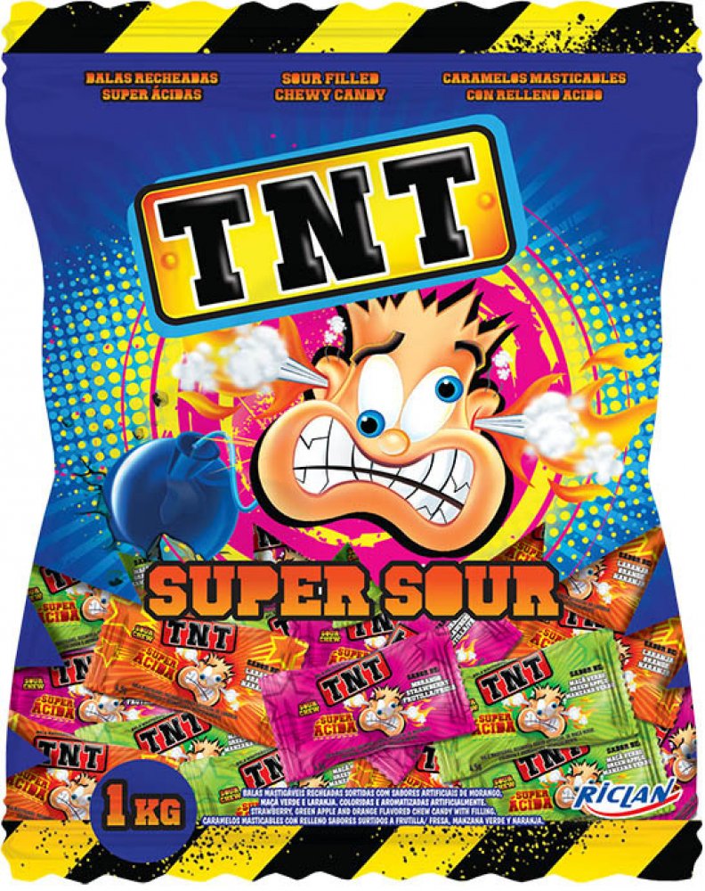 TNT Super Sour – Ovocné bonbóny s konzistencí připomínající rozpustnou gumu s kyselou náplní uvnitř.