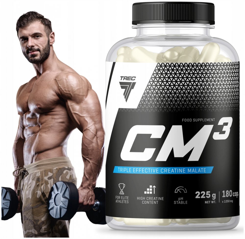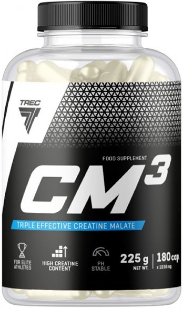 CM3 je doplněk stravy od Trec Nutrition, který využívá trikreatin jablečnan. Jedná se o jednu z nejstabilnějších forem kreatinu, což znamená lepší vstřebávání a účinnější účinek ve srovnání s tradičním monohydrátem.