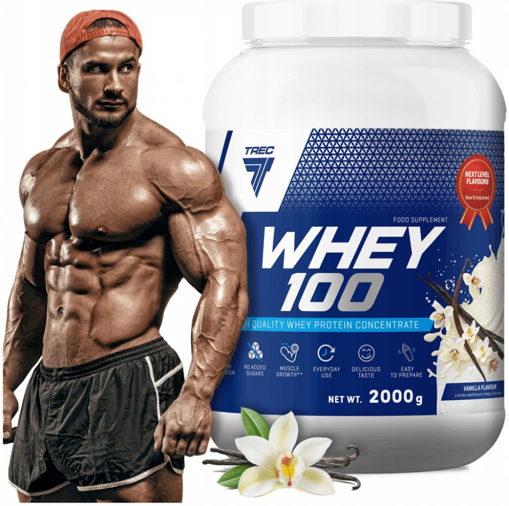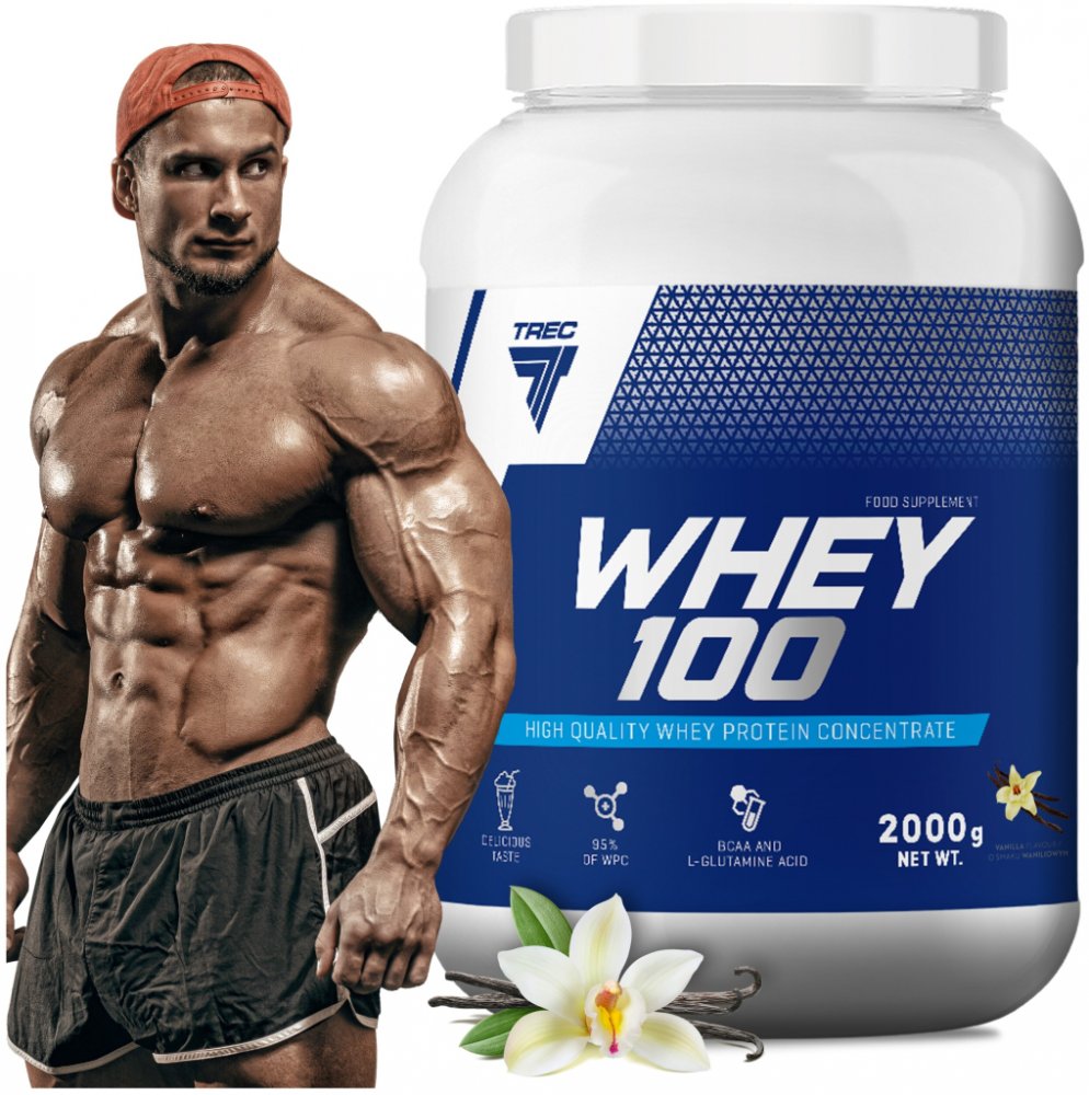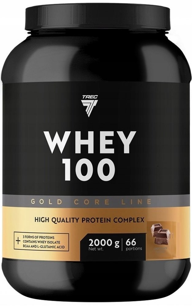 Trec Whey 100 je stoprocentní syrovátkový proteinový koncentrát. Koncentrace čistého proteinu v produktu přesahuje osmdesát procent. Jedná se o inovativní přípravek vyrobený ultrafiltrací. Díky tomu vyniká extrémně nízkým obsahem tuku a laktózy. Při výrobě byl použit vysoce kvalitní syrovátkový proteinový koncentrát. Trec Whey 100 je vysoce čištěný a rychle působící zdroj plnohodnotných proteinů.