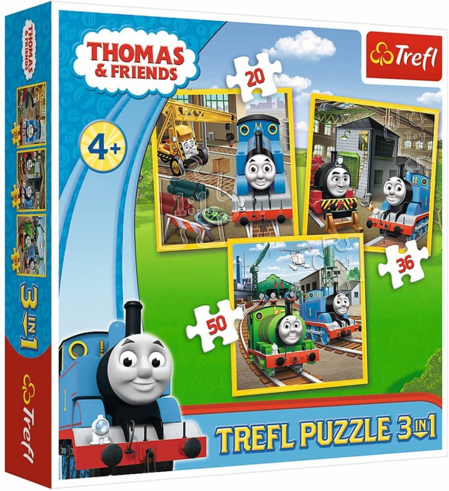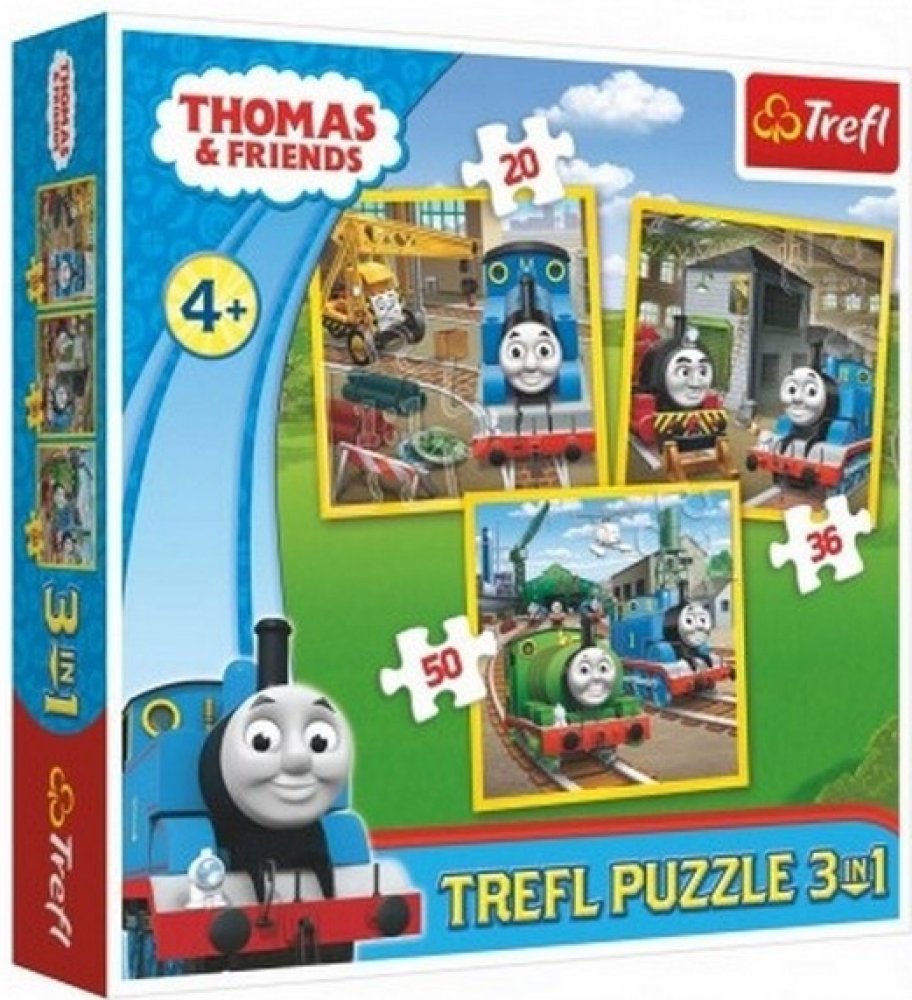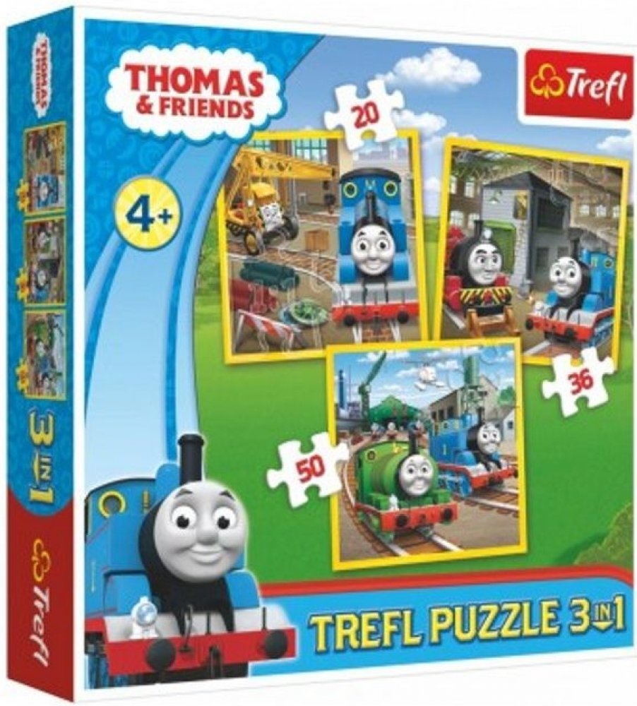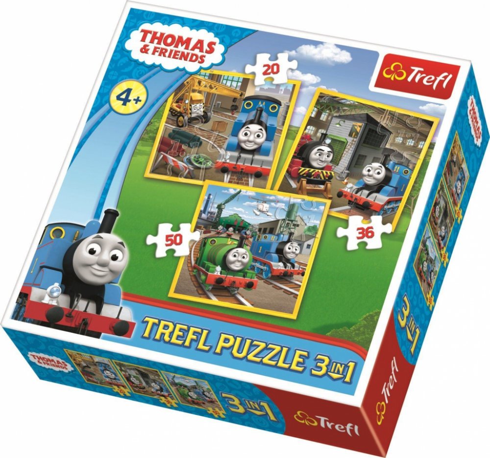 Progresivní dětské puzzle - TREFL - 20 + 36 + 50 dílků, Mašinka Tomáš: Do akce!(3v1) 34821.