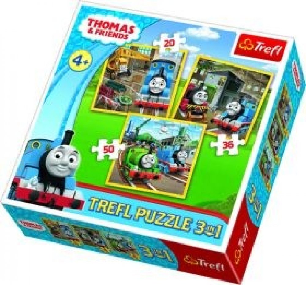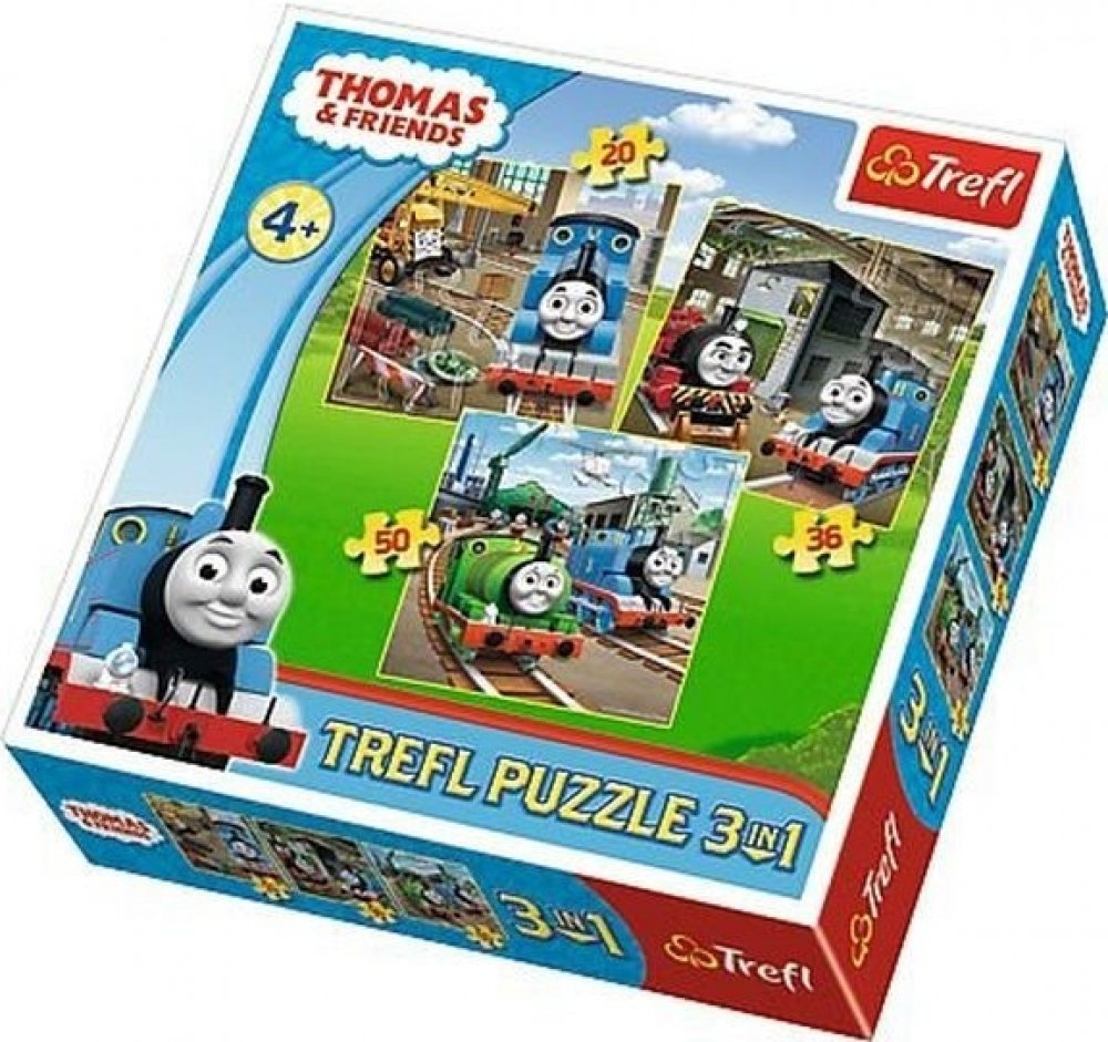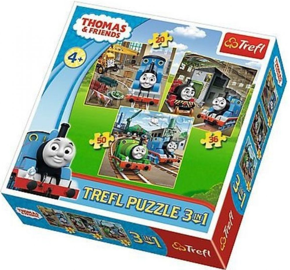 Progresivní dětské puzzle - TREFL - 20 + 36 + 50 dílků, Mašinka Tomáš: Do akce!(3v1) 34821.