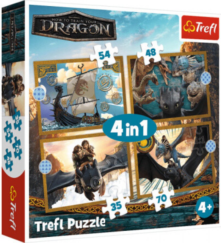 Trefl 4v1 Dračí dny 35,48,54 a 70 dílků