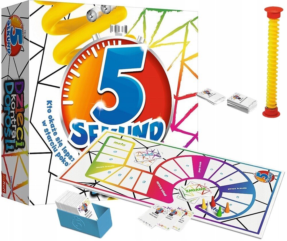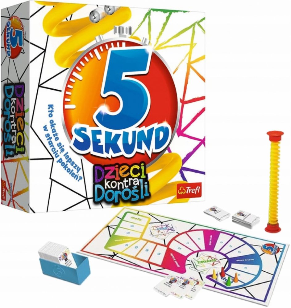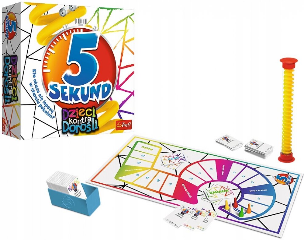 Rodinná hra 5 Sekund Děti versus Dospělí Trefl 02120Tentokrát se rodiče utkají se svými ratolestmi!Určitě dokážete vyjmenovat 3 kusy nábytku, které se nacházejí ve vaší práci, ale vyznáte se stejně dobře v populárních kreslených filmech? Protože vaše děti je určitě znají!Vytvořte týmy, abyste rychleji a efektivněji získali více bodů. Musíte dobře odhadnout, kdo z týmu a na jakou otázku bude odpovídat. A je o co bojovat! Pokaždé, když dospělý správně odpoví na otázku ze světa dítěte nebo se dítě úspěšně utká s otázkou z prostředí dospělých, tým dostane dvakrát více bodů!Kdo se ukáže jako lepší ve střetu generací?Hra je určena pro děti od 8 let.Obsah krabice378 karet s otázkami (756 otázek),6 karet „Čas“,6 karet „Změna“,6 figurek,1 herní plán,1 speciální časoměřič,1 plastová krabička na karty,instrukce