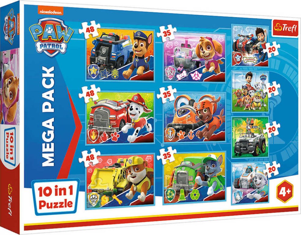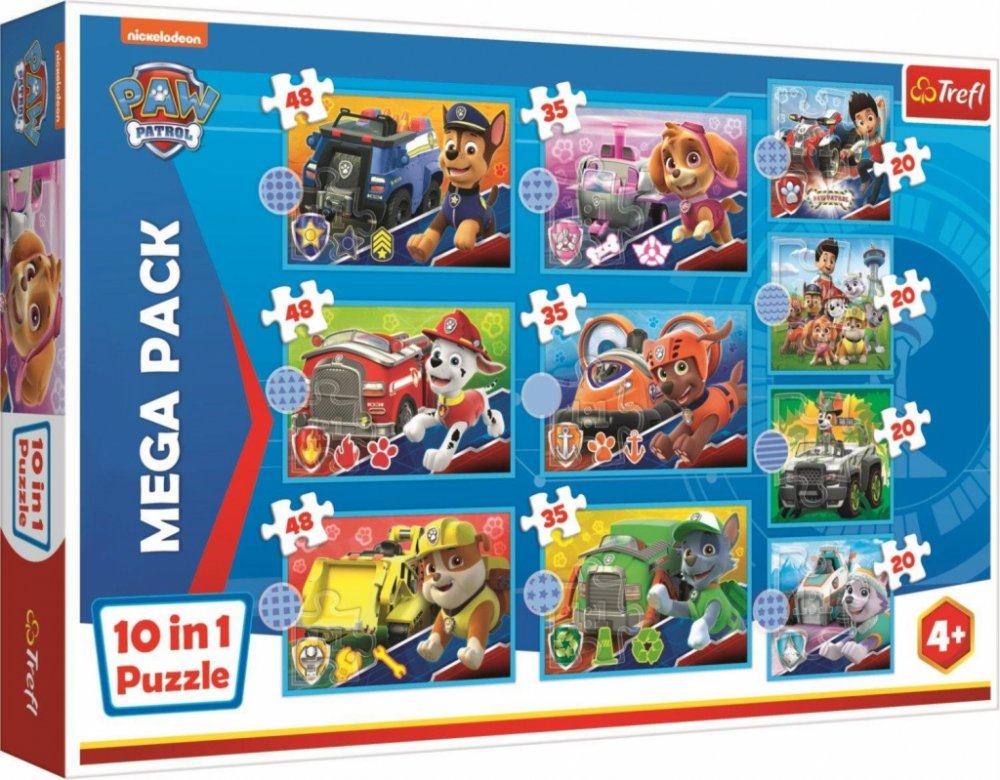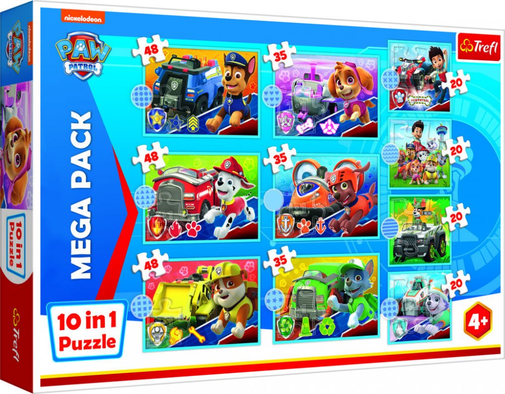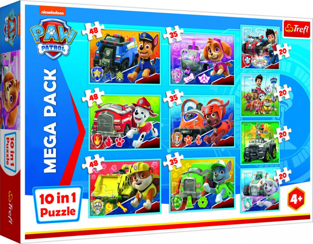 Vyberte si na ProLucinku.cz z více něž 20 000 produktů. Dárek ke každé objednávce. Mega Pack dětských puzzle s motivem animovaného seriálu Tlapková patlora od výrobce Trefl. Balení obsahuje: čtyři puzzle s 20 dílky, tři puzzle s 35 dílky a tři puzzle s 48 dílky.