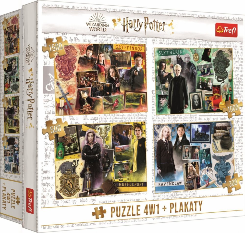 4 puzzle v jednom balení = 4 studentské koleje v Bradavicích