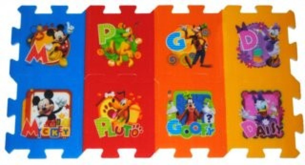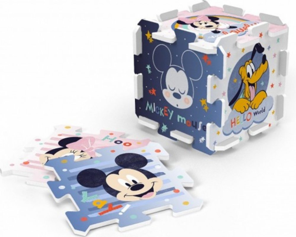 Pěnové puzzle Mickey 32×32×1cm 8ks v sáčku: Pěnová podložka jevyrobena ze speciálního materiálu (nejedná se o klasickou vroubkovanou EVApěnu, ale o materiál podobný silné karimatce nebo několikavrstvémumirelonu). Má nadstandardní tloušťku 1,5 cm a je určena zejména ke hraní. Puzzleje měkké, omyvatelné, zdravotně nezávadné, je lehce manipulovatelné askladné. Rozměr balení a specifikace: Z jednotlivých dílů lze poskládat kostka, tunel pro autíčka, nebo jejlze použít jako krásnou dekoraci na stěnu.Z osmi samostatných dílů lze vytvořit plochu přibližně117 × 60 cm.