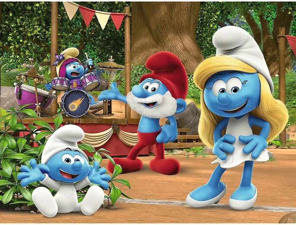 TREFL 18312 - Šmoulové: Šmoulové a Šmoulinka. Kvalitní puzzle skládačka, obrázek 27 x 20cm, 30 dílků.