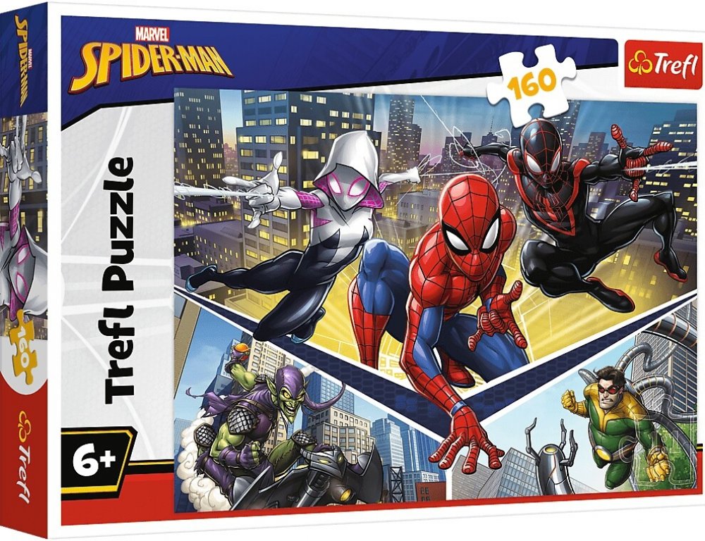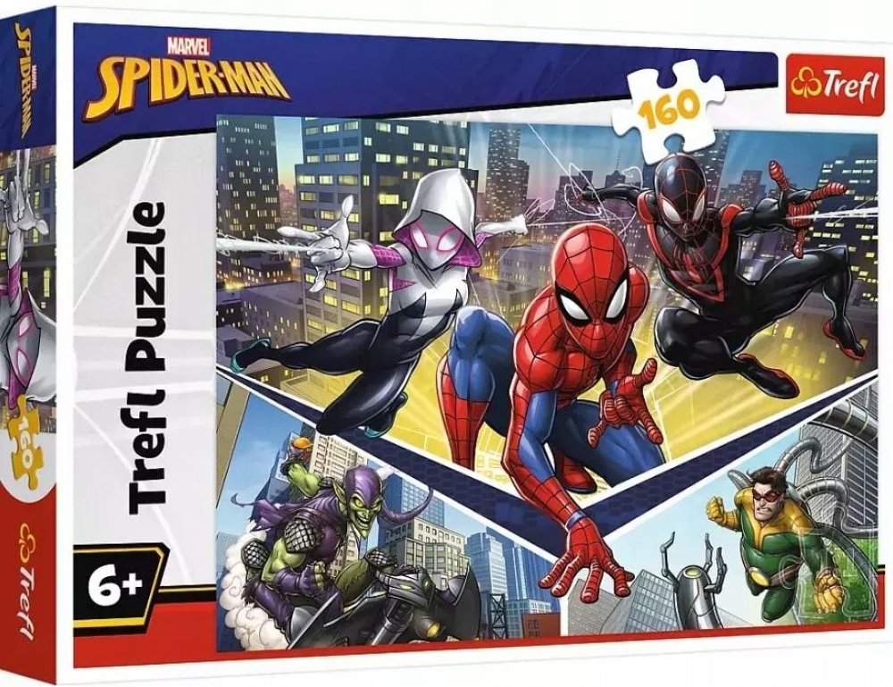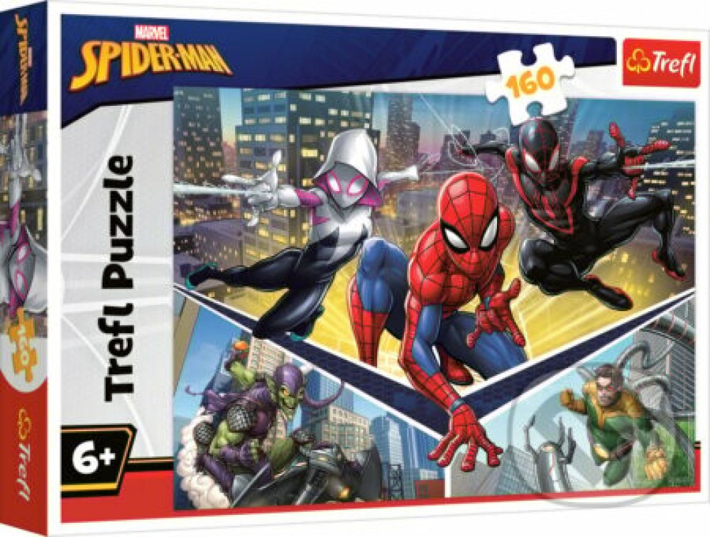 Dětské puzzle s motivem Spiderman: Spidermanova síla obsahuje 160 dílků. Rozměry balení: 19,5 x 29 cm, rozměry složeného obrázku 41 x 27,8 cm. Skládání puzzle je oblíbená zábava nejen u dětí. Puzzle můžete složit, znovu rozebrat a později si to zopakovat nebo obrázek třeba slepit a použít jako dekoraci na stěnu. Skládačka puzzle je vhodná pro malé i velké děti. Učí je přemýšlení, trpělivosti a je zárukou radosti při zdárném složení. Puzzle je vyrobeno z kvalitních materiálů, za použití speciálního kalandrovaného papíru, který odráží světlo, což usnadňuje skládání. Puzzle je vyrobeno v Polsku, na výrobu byly použity ekologické materiály. Puzzle TREFL je kvalitní polskou značkou, která od roku 1985 získala jedno z předních míst na trhu s puzzle. Vhodné pro děti od 6 let.