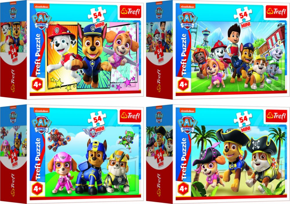 Společná dobrodružství - mini puzzle s motivem psích hrdinů z Tlapkové Patroly, ve čtyřech variantách provedení.
