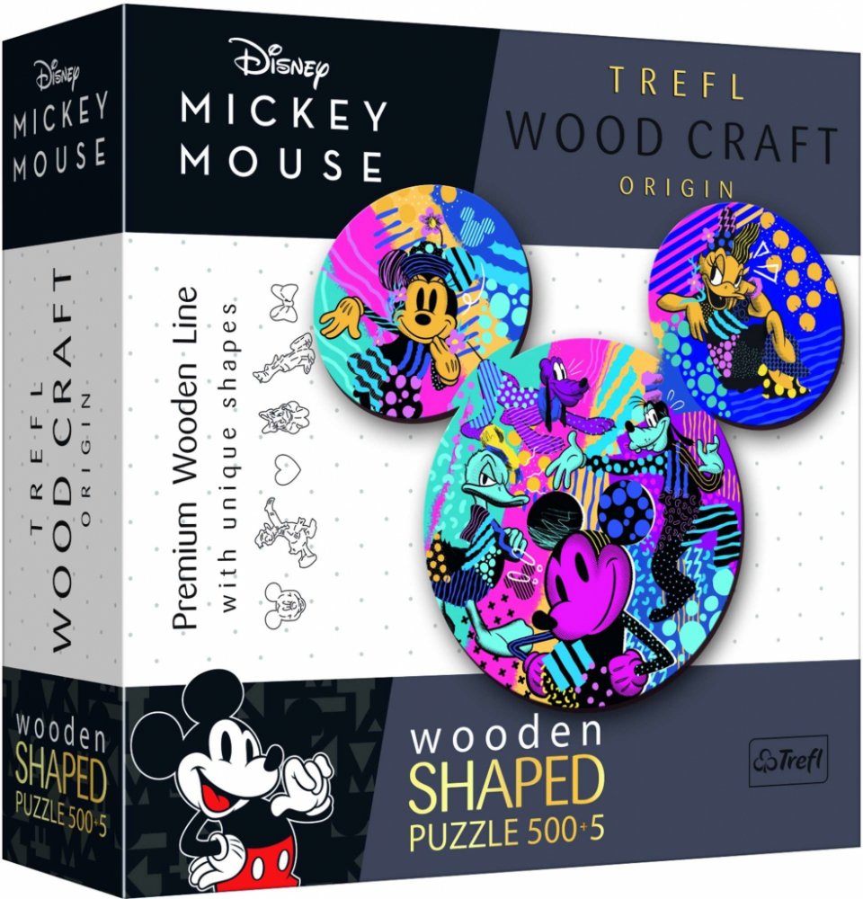 Dřevěné oboustranné puzzle TREFL z prémiové řady Wood Craft Origin se speciálně tvarovanými dílky, které jsou inspirované světem Disney.