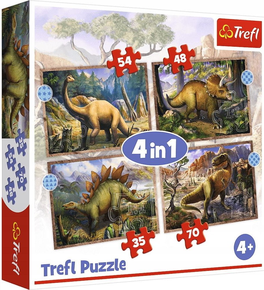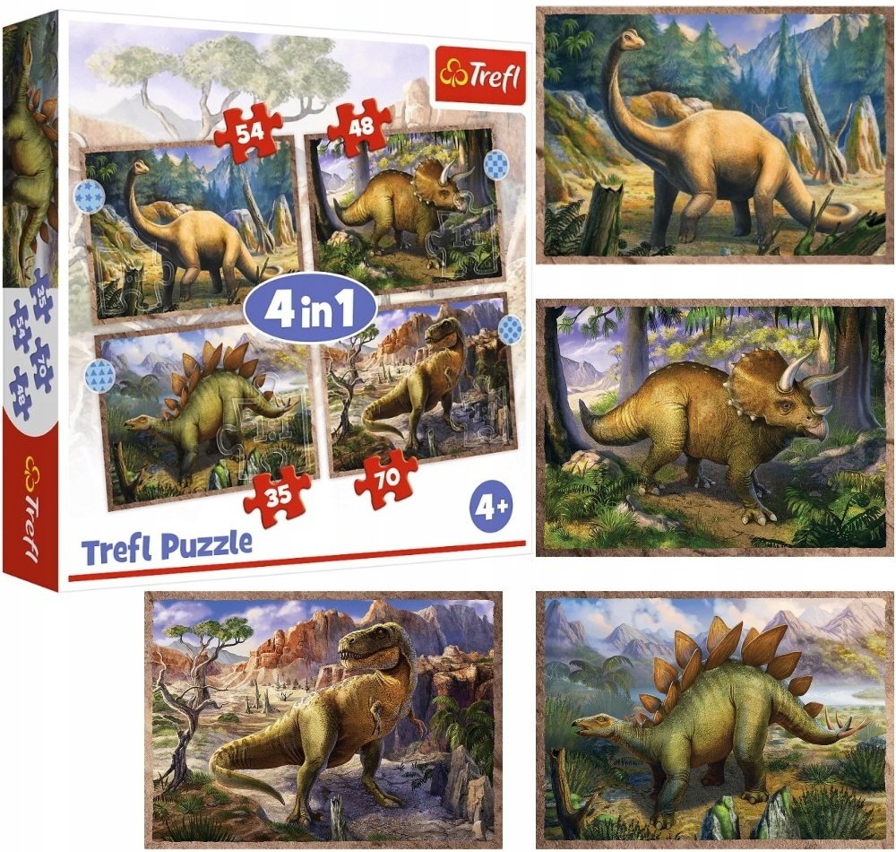 Puzzle a jeho skládání podporuje logické myšlení, a navíc pomáhá zkrátit volné chvíle. I přes různé modifikace se princip nemění, a tak může tato aktivita bavit po generace. V balení se nachází 207 dílků, jejich složení už je pro trpělivější hráče. S jejich pomocí lze sestavit jeden ze čtyř odlišných obrázků. Nabízené puzzle každým komponentem odkrývá kousek svého vzoru. Materiálem použitým k výrobě tohoto puzzle je papír. Zásadní přednosti puzzle Trefl Puzzle Zajímaví dinosauři 4v1 (35,48,54,70 dílků) Puzzle rozvíjí jemnou motoriku, koncentraci i předvídavost Jeho skládání uklidňuje a je dobrým prostředkem k relaxaci Zajímavé puzzle Trefl je svým motivem vhodné pro děti od 4 let Téma: dinosauři Obsahuje celkem 207 dílků Spadá mezi klasické puzzle, které patří mezi nestárnoucí klasiku Z dílků lze sestavit čtyři odlišné obrázky K jeho výrobě slouží papír