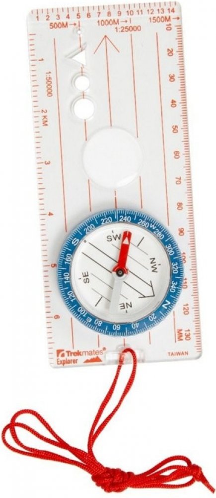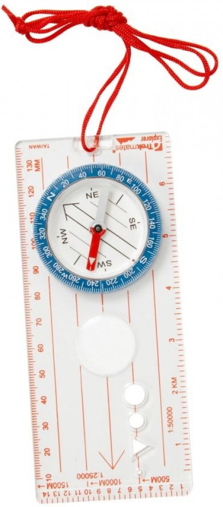 Buzola s kompasem na průhledné plastové základně. Spolu s mapou pomáhá buzola se správnou navigací a orientací v terénu. Na základně buzoly se nachází otočné kolečko s luminiscenčními body označujícími světové strany a poledníkové linie. Vyvážená kovová střelka je v kapalinové kapsli a ukazuje na severní magnetický pól Země. Základní deska obsahuje také zvětšovací čočku, otvory pro zakreslování ko...