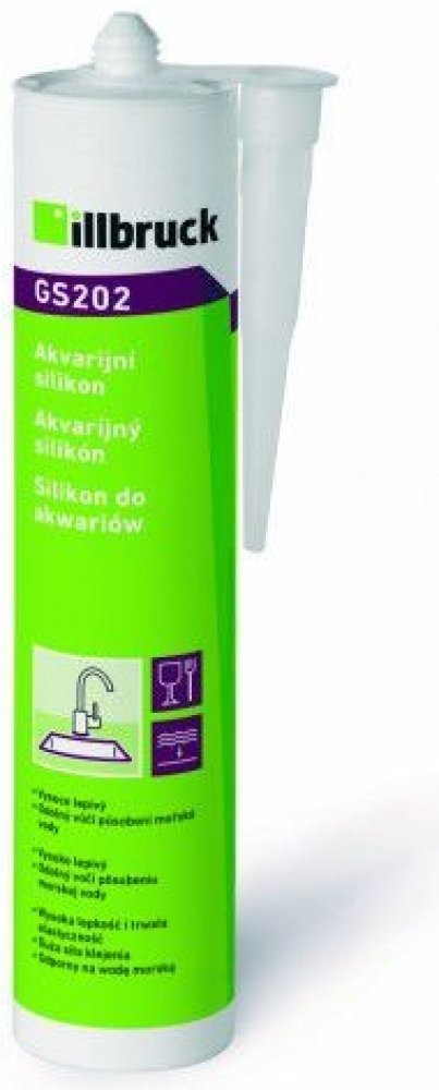 GS202 Akvarijní silikon 310ml Silikon pro akvária je vhodný k utěsnění spár akvárií, bazénů, vitrín, celoskleněných konstrukcí a pro zasklení konstrukcí umístěných trvale pod vodou. Silikon je také vhodný pro tmelení spár v kontaktu s pitnou vodou a v prostředí bazénů s koncentrací chlóru do 1 mg/litr. Hlavní přednosti vysoce lepivý dlouhodobě elastický fyziologicky nezávadný odolný vůči působení mořské vody Materiál Silikon pro akvária je elastická rychle tvrdnoucí jednosložková silikonová těsnicí hmota. Silikon odpovídá bezpečnostním předpisům DIN 32 622 stanovených na lepidla pro celoskleněná akvária. Po úplné reakci tmelu byla prokázána trvalá zatížitelnost, fyziologická nezávadnost, odolnost proti hydrolýze, UV záření a odolnost proti působení mořské vody. Reakční systém silikonu pro akvária zaručuje rychlou vulkanizaci. Během prvních 24 hodin zreaguje vrstva o tloušťce cca. 3 mm. Během reakce docházík uvolnění malého množství kyseliny octové, po úplném vytvrzení je silikon bez zápachu. Silikon pro akvária se vyznačuje extrémně vysokou odolností proti stárnutí. Provedení 310 ml / kartuše TECHNICKÝ LIST NALEZNETE V ZÁLOŽCE - KE STAŽENÍ
