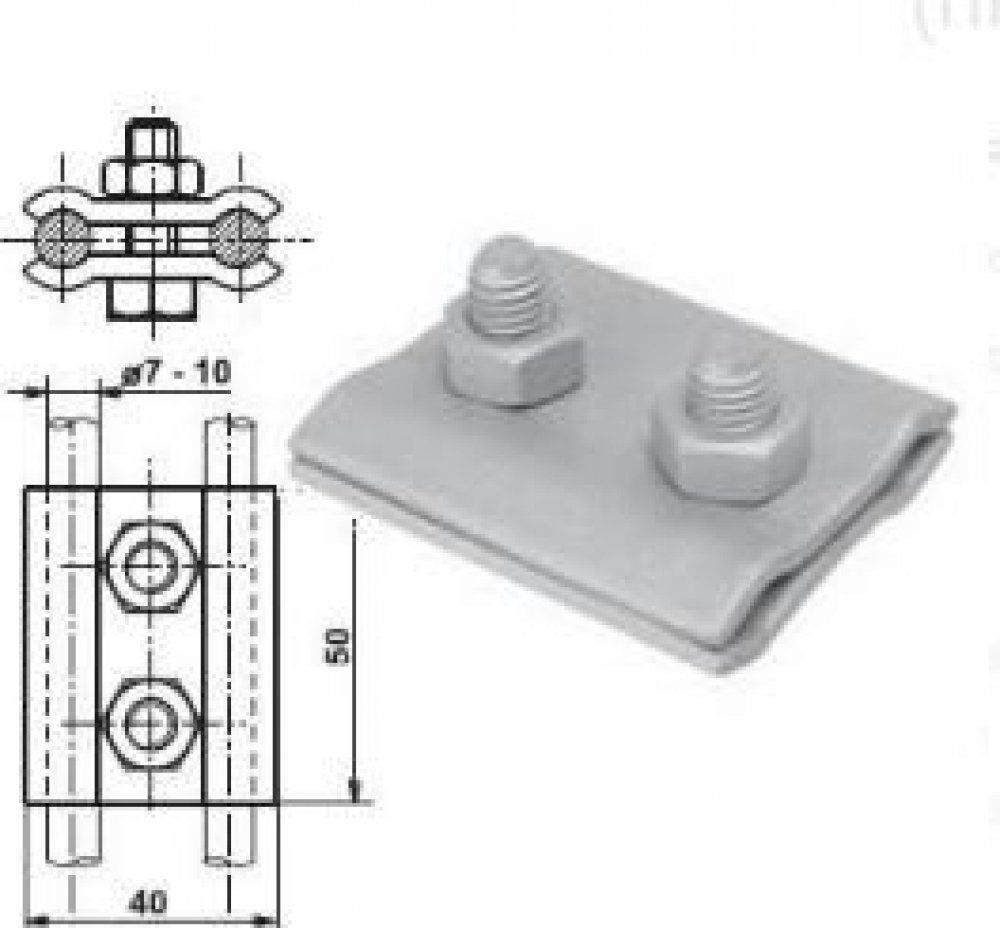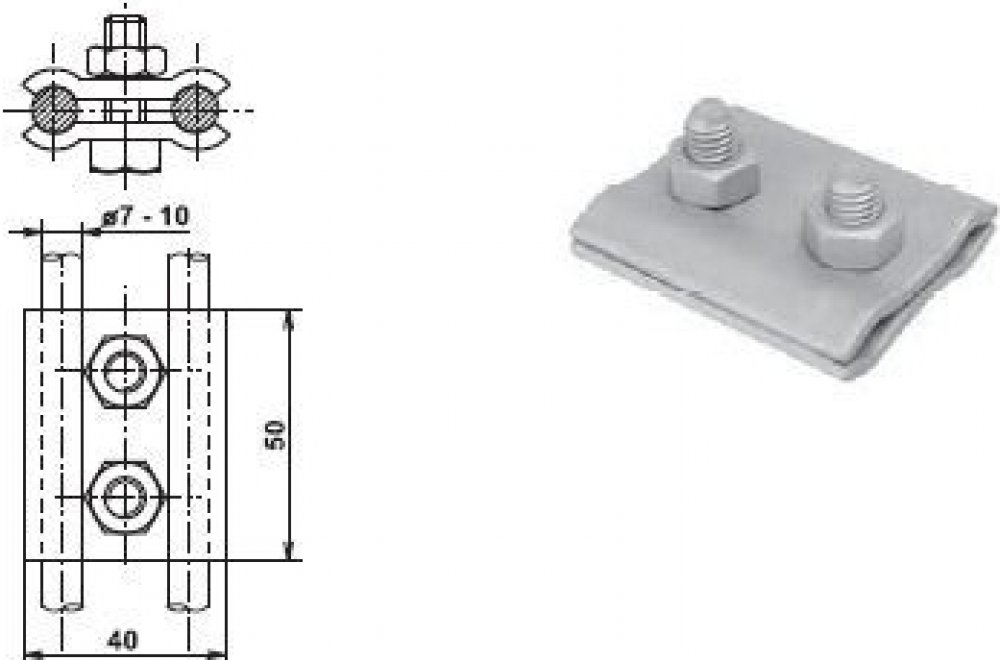 • Spojení kruhových vodičů nebo vodiče 7–10 mm s plochým materiálem