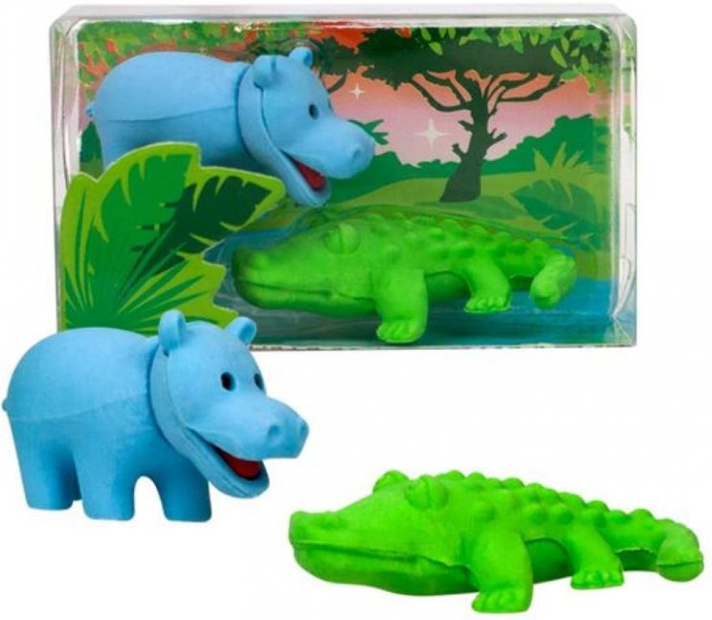 Safari zvířata přebírají váš stůl! Roztomilá gumová souprava skládající se z hrocha a krokodýla. Rozměry produktu včetně balení:7,0 cm x 4,2 cm x 3,2 cm Varování! Nevhodné pro děti do 36 měsíců. Malé díly. nebezpečí udušení. Doporučuje se dohled dospělé osoby. Toto varování prosím dodržujte.