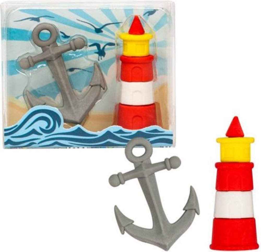 Vneste si na stůl dotek dovolené a pobřeží - gumová sada skládající se z kotvy a majáku.Rozměry produktu včetně balení:5,3 cm x 6,2 cm x 2,25 cm Varování! Nevhodné pro děti do 36 měsíců. Malé díly. nebezpečí udušení. Doporučuje se dohled dospělé osoby. Toto varování prosím dodržujte.