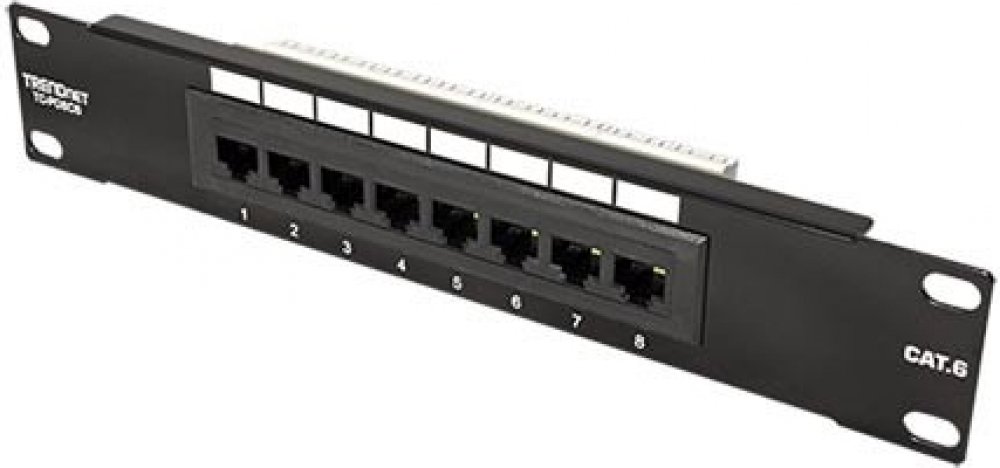 Nestíněný, 8 portový patchpanel kategorie 6 pro montáž do 10“ rozvaděče (výška 1U).;