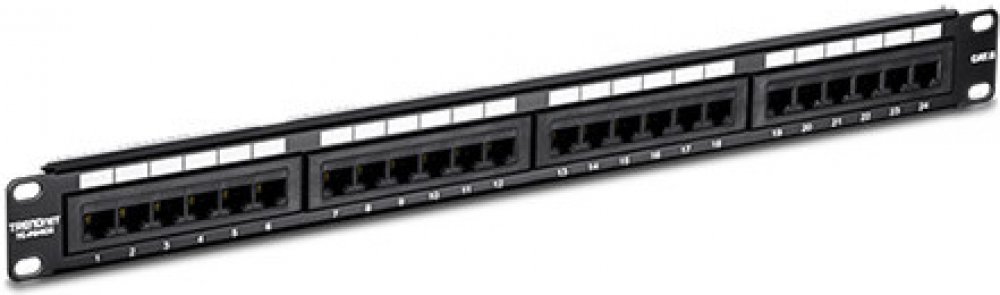 Nestíněný, 24 portový patchpanel kategorie 6 pro montáž do 19“ rozvaděče (výška 1U).;