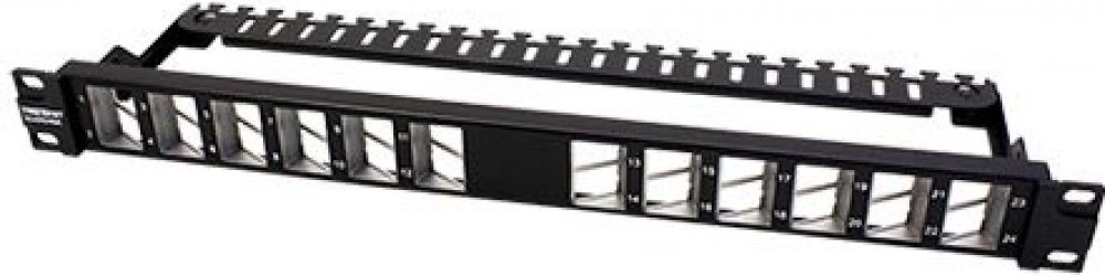 Rám patchpanelu pro osazení stíněných konektorů (keystone), 24 pozic (výška 1U).