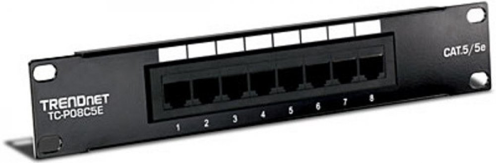 Značkový patchpanel TRENDnet TC-P08C5E je spolehlivou variantou pro Vaši datovou síť. Splňuje normy normy pro kategorii Cat. 5e a je přizpůsoben pro montáže do 10" rozvaděče a velikostí 1U.