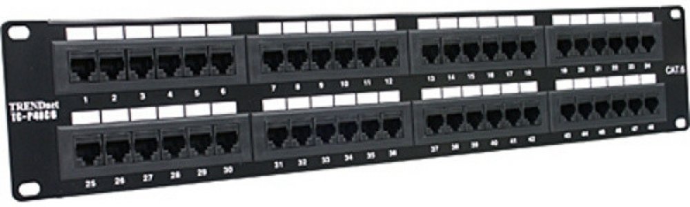 Nestíněný, 48 portový patchpanel kategorie 6 pro montáž do 19“ rozvaděče (výška 2U).;