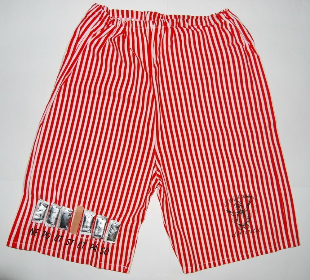 Trenýrky s kondomy I s malým kašpárkem Červenobílá