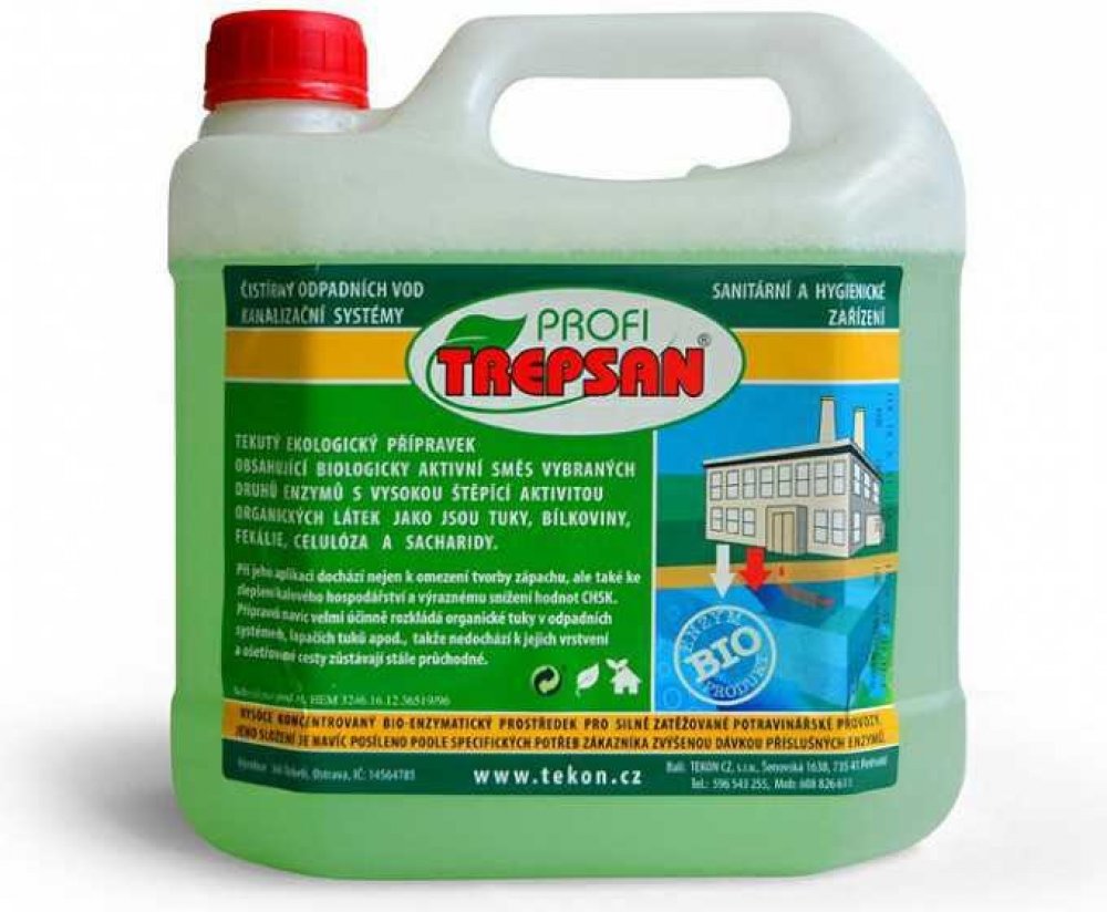 Trepsan Profi je nejsilnější variantou z trojice produktů Trepsan (Klasik, Forte, Profi). Je vhodný pro problematické potravinářské provozy, které mají složitý odpadní systém s lapačem tuku a pro nárazově přetížené domácí čistírny vod nebo v ČOV v havarijním stavu.