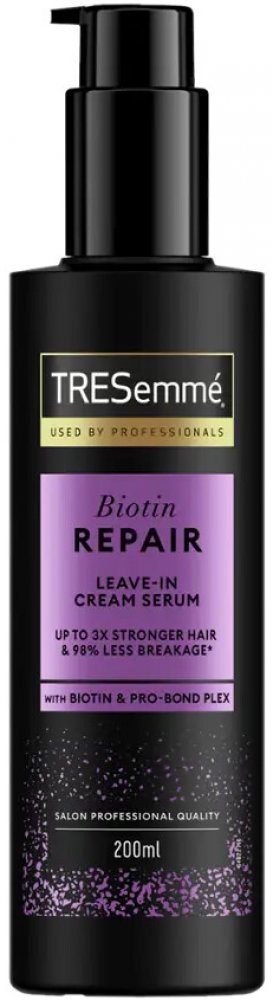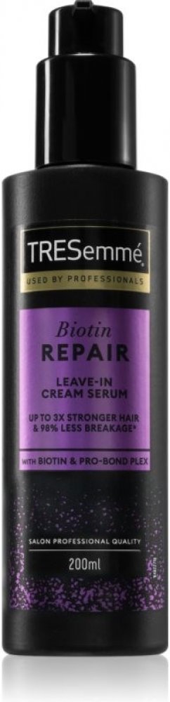 TreSemmé Biotin Repair leave in krémové sérum na vlasy 200 ml Pro až 3x silnější vlasy bez krepatění po dobu 48 hodin, bez lámání, s biotinem a Pro-Bond Plexem! OBSAHUJE: Špičková ochrana proti krepatění: Zajistí, že vaše vlasy budou hladké a bez krepatění po celých 48 hodin. Technologie Pro-Bond Plex: Posiluje vlasy a snižuje jejich lámavost. Biotin: Podporuje zdravý růst vlasů a zvyšuje jejich s...