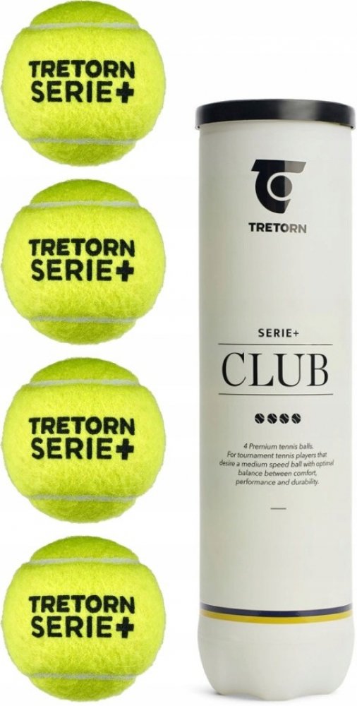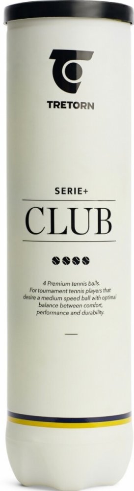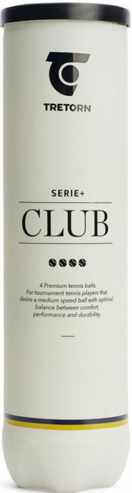Tenisové míče Tretorn Serie+ Club 4-Tube jsou schválený ITF. Míč má jádro z přírodního kaučuku a je plněný plynem. Míče mají střední rychlost, o něco nižší než míče Serie+ Tour. Vnější vrstva tohoto míče je vyrobena z přírodní vlny. Ideální pro turnaje a tréninky! Baleno po 4 kusech.