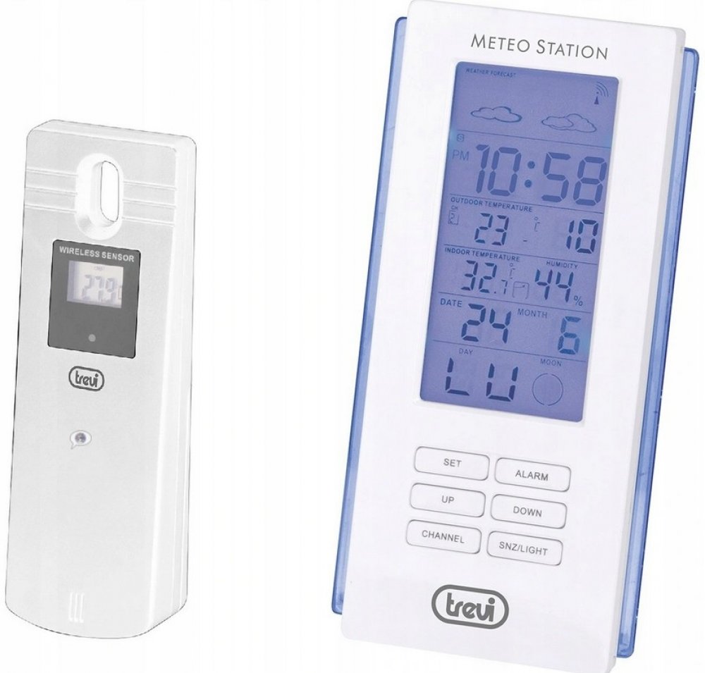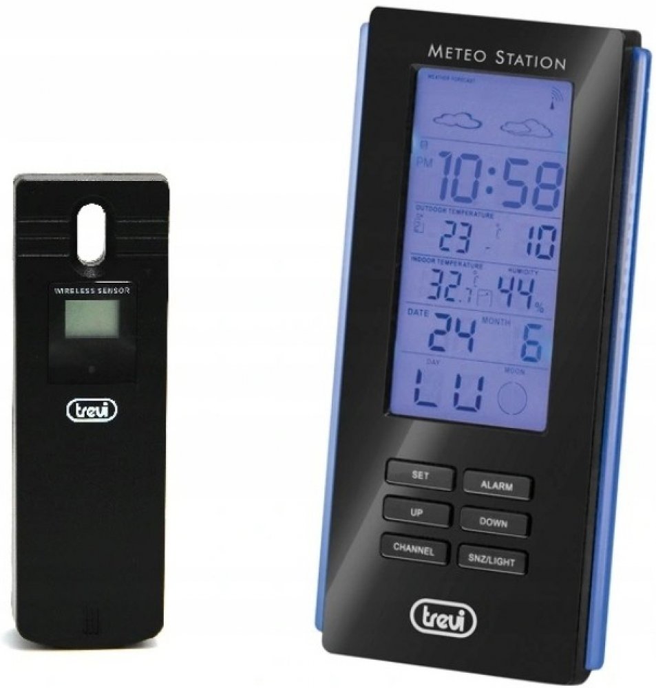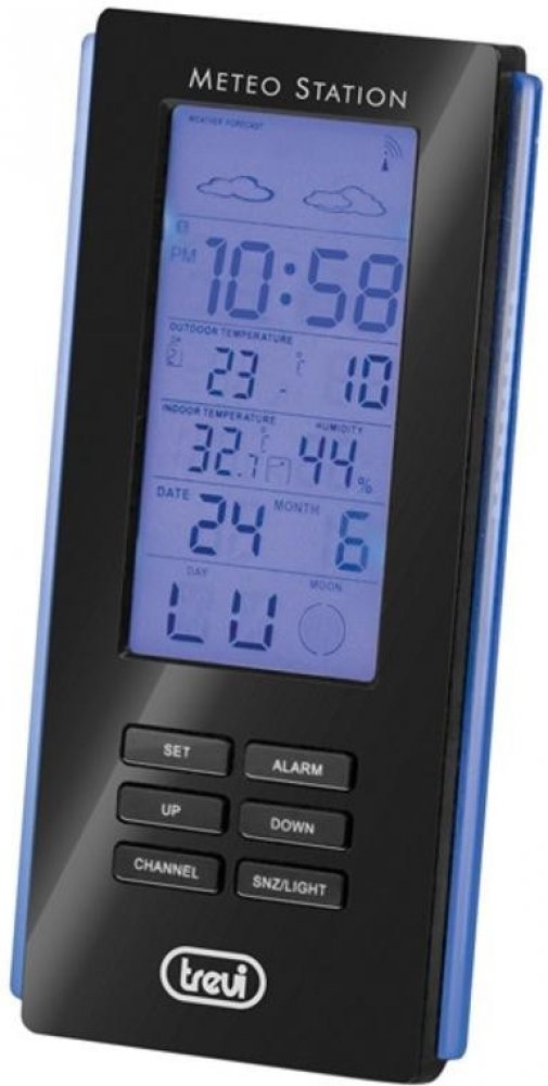 Vlastnosti:- rádiem řízené hodiny s budíkem- formát hodin 12/24 hod.- vícejazyčný kalendář- označení fází měsíce- vnitřní a vnější digitální teploměr- interní digitální vlhkoměr- externí senzor zaznamenává teplotu a vlhkost- displej s modrým podsvícením- možnost umístění na zeď nebo na stůl- napájení hlavní jednotky: baterie 3x AAA (nejsou součástí)- napájení externího senzoru: baterie 2x AA (nejs...