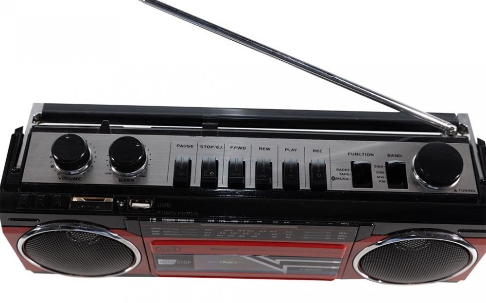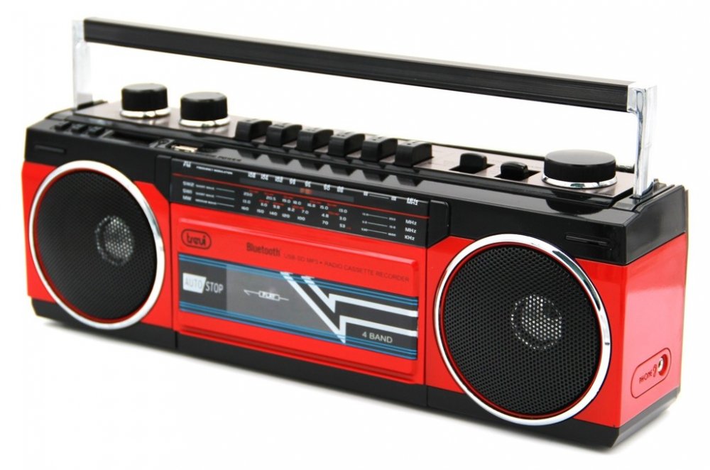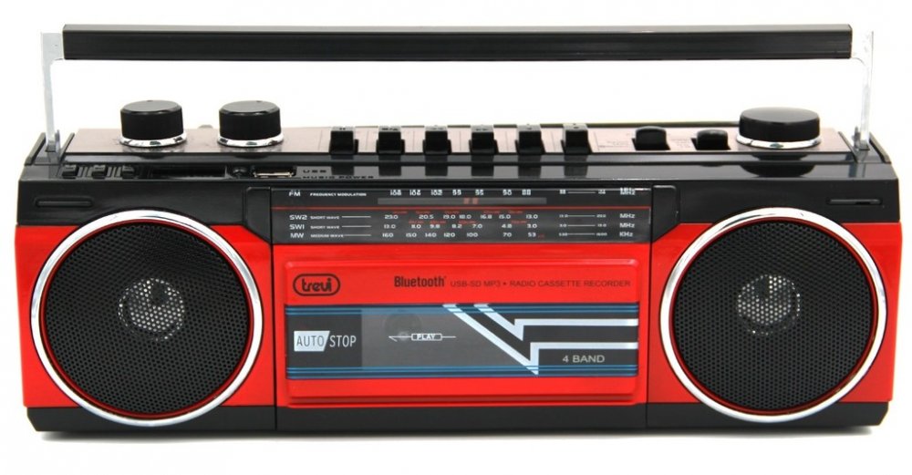 Vzpomínáte si ještě na typický vzhled přenosných radiomagnetofon z osmdesátých let, dvojici černých reproduktorů, dvířka na kazetu uprostřed, hranaté tvary a množství ovládacích tlačítek a knoflíků? Pokud vám starý přístroj dosloužil, radiomagnetofon Trevi RR 501 v v černo - červeném provedení ho může zcela nahradit. Má sklopné držadlo pro přenášení, otočné potenciometry pro nastavení zvuku a ladicí knoflík pro nastavení oblíbené stanice rádia.