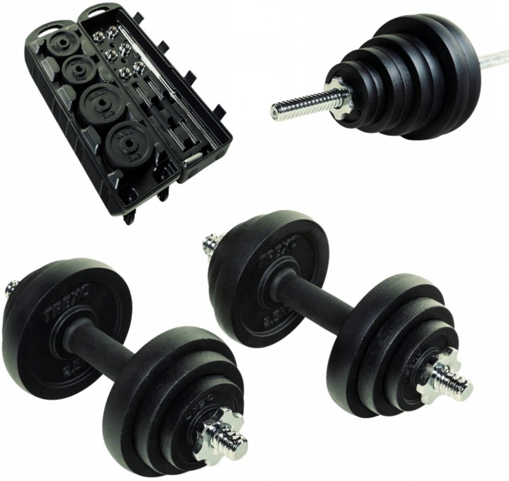 Sada činek s činkou XTREXO LITINOVÁ 50 kg DK50 s ochranným povlakem✨Vybudujte si formu, aniž byste opustili domov! Sada činek s činkou XTREXO DK50
