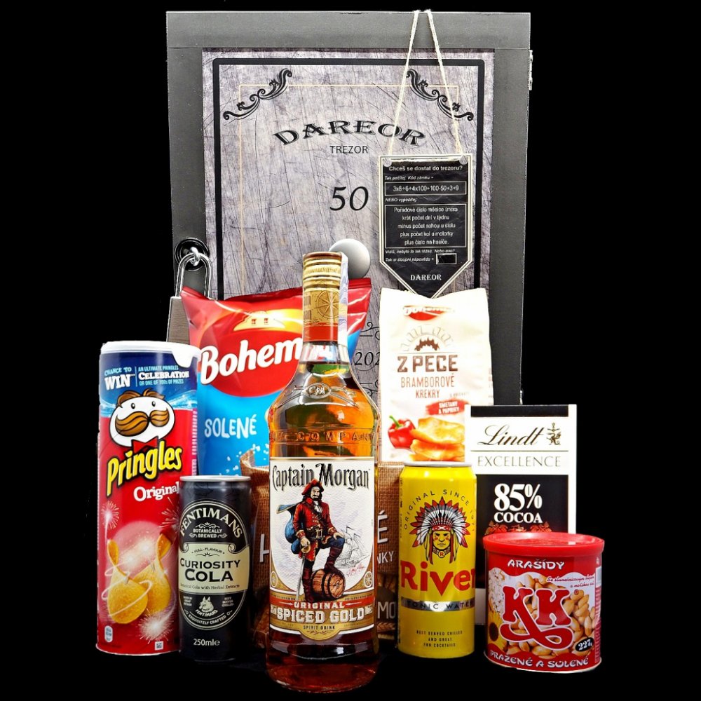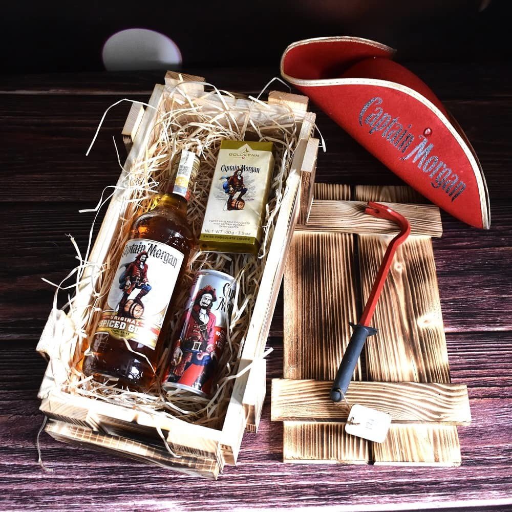 Trezor dárková bedna s potiskem Captain Morgan a dobroty