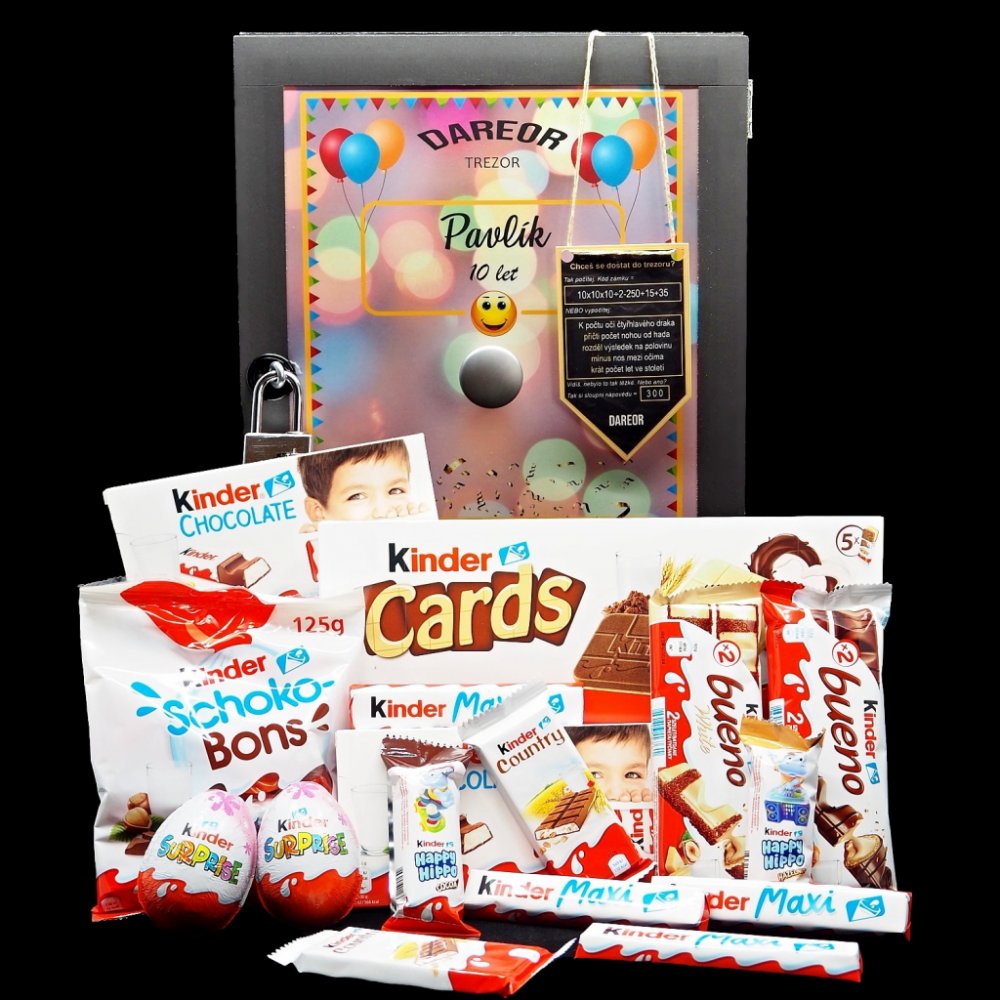 Trezor dárková bedna s potiskem plná Kinder čokolád