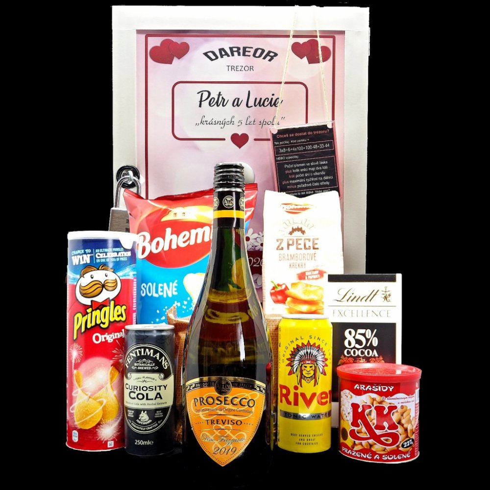 Trezor dárková bedna s potiskem Prosecco a dobroty