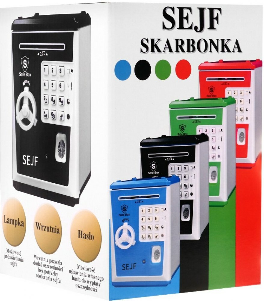 - velké prasátko ve tvaru trezoru, napájené 3 bateriemi AA 3 x 1,5 V (nejsou součástí dodávky),