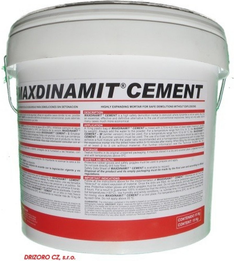 MAXDINAMIT CEMENT je trhací cement o vysoké bezpečnosti, který je nepostradatelný a účinný v těch případech, kde není možno použít dynamit.