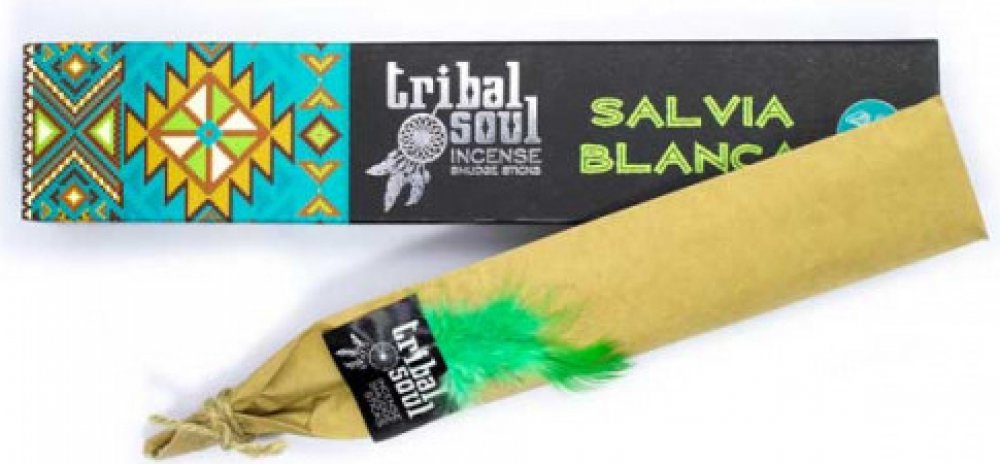 Tribal Soul - White Sage - Bílá šalvěj - Vonné tyčinky, 15 g. Tyčinky jsou ručně vyrobeny s použitím tradičních indických metod a receptů. Bílá šalvěj má vysoce aromatickou vůni a je považována za posvátnou.