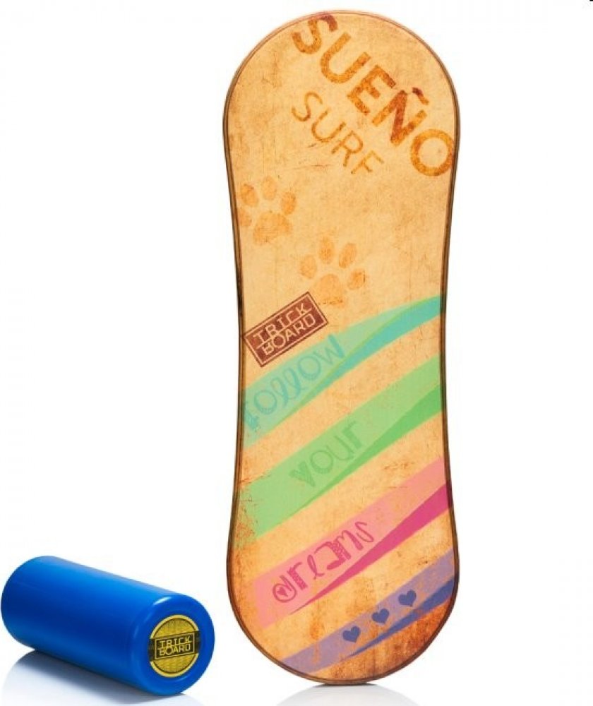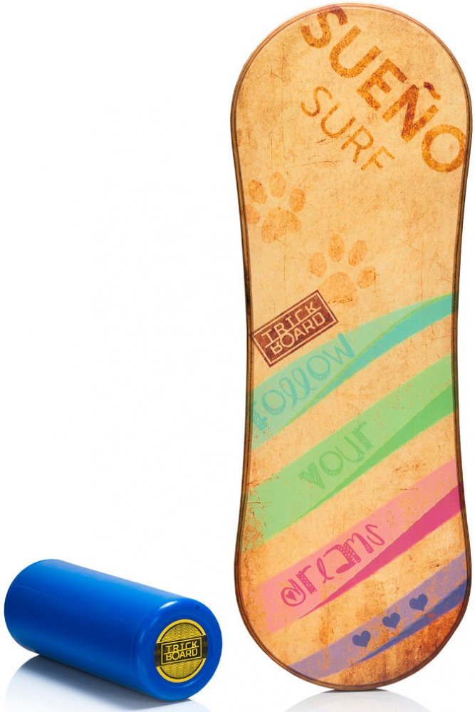 Vrchní deska Trickboardu je potažená protiskluzovou vrstvou příjemnou pro bosá chodidla a zároveň dostatečně odolnou pro podrážky. Válec Trickboardu lze používat i v interiéru - na podlaze nedělá šmouhy.