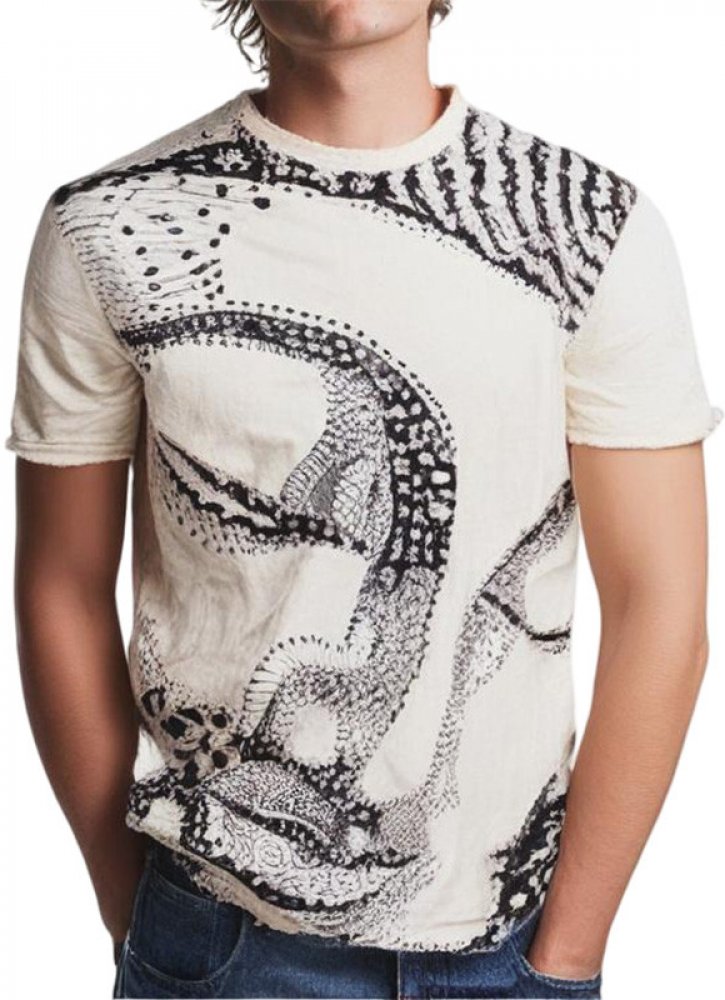 Pánské bavlněné tričko s krátkým rukávem a originálním potiskem. Potisk je ve menší replice i na zádech. Tričko je vyrobeno v mačkané úpravě, takže se nemusí vůbec žehlit.