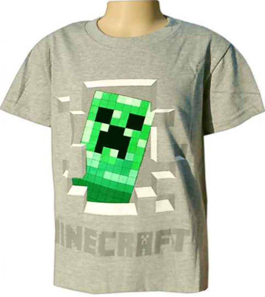 specifikace: dětské šedé bavlněné tričko pro fanoušky počítačové hry Minecraft s velkým obrázkem zelené tiché příšery Creeper, hledáte vhodný dárek pro vaše děti? Zkuste darovat i jiné minecraft tričko dětské za super cenu a s expresním doručením do 48 hod.