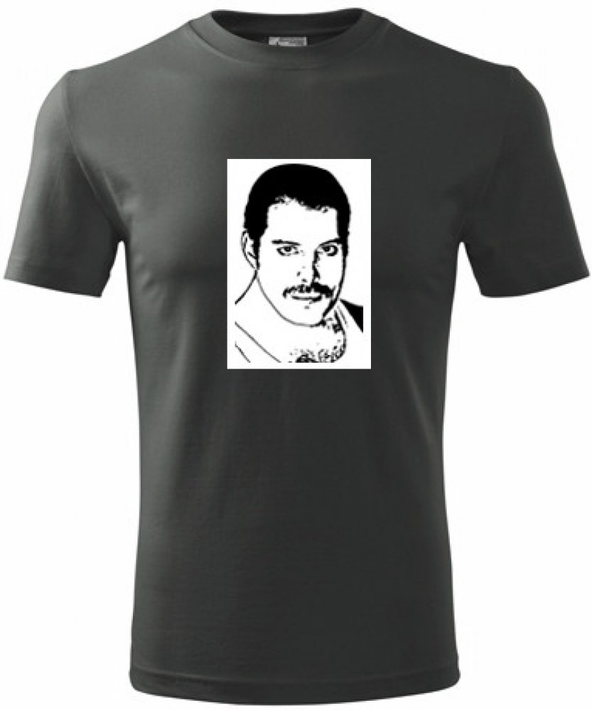 Grafitové tričko Freddie Mercury. nabízené velikosti jsou S,M,L,XL,XXL,XXXL. Výběr z 12ti barev. Tričko patří do kategorií . Technologie potisku: Tisk na tričko je realizován pomocí termolisu a potisk je velice trvanlivý.