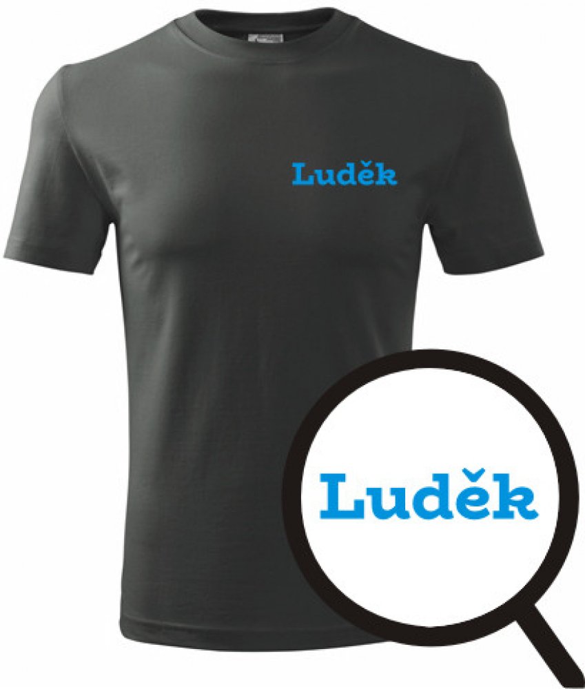 Grafitové tričko Luděk. nabízené velikosti jsou S,M,L,XL,XXL,XXXL. Výběr z 12ti barev. Tričko patří do kategorií Trička se jménem na hrudi pánská, . Technologie potisku: Tisk na tričko je realizován pomocí termolisu a potisk je velice trvanlivý.
