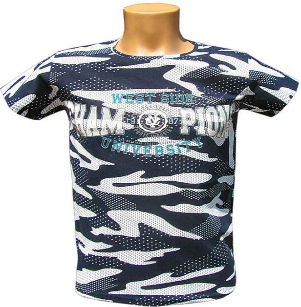 velikostní číslo: M, L, XLmateriálové složení: 100% bavlnaspecifikace: tmavomodré bavlněné tričko s krátkým rukávem a bledošedá potiskem simulující maskáčovinu, na předním díle je nápis CHAMPIONS, velmi příjemný jemný materiál vhodný pro letní období, prát při teplotě 30 ° C