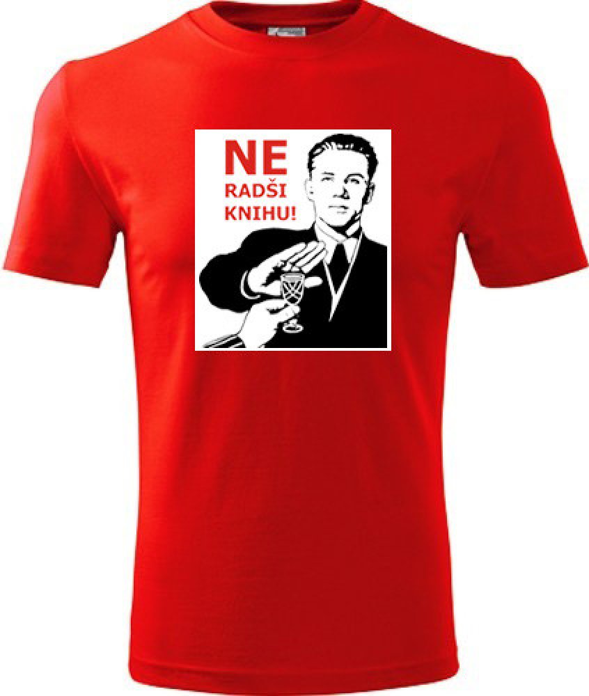Červené tričko Ne Radši knihu. nabízené velikosti jsou S,M,L,XL,XXL,XXXL. Tričko je zařazeno v sekcích Dárek pro muže k 31, Trička s rokem narození 1952, Dárek pro editora, Dárek pro kutila, Dárek pro fotbalistu,. Technologie tisku: Tisk na tričko je realizován pomocí přímého digitální tisku na textil.