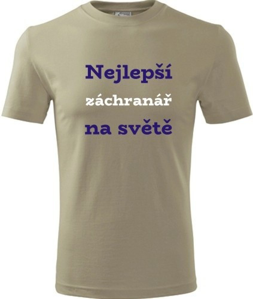 Khaki tričko nejlepší záchranář na světě. nabízené velikosti jsou S,M,L,XL,XXL,XXXL. Výběr z 12ti barev. Tričko patří do kategorií Dárek pro záchranáře, . Technologie potisku: Tisk na tričko je realizován pomocí termolisu a potisk je velice trvanlivý.